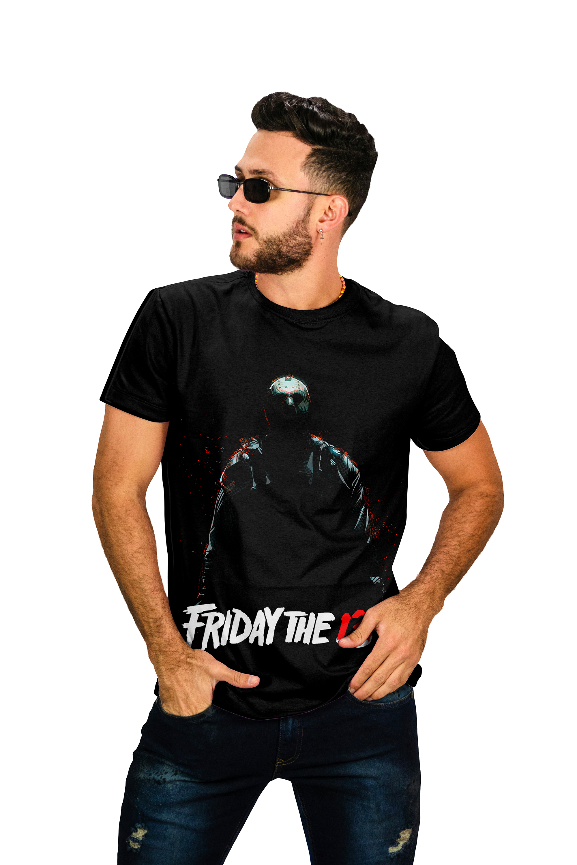 ¡Sumérgete en el espíritu de Halloween con nuestra espectacular playera de Jason! Este diseño exclusivo captura la esencia del terror con Jason con su machete. Confeccionada en 100% algodón, esta camiseta es perfecta para una noche de película de terror o una fiesta de Halloween.
