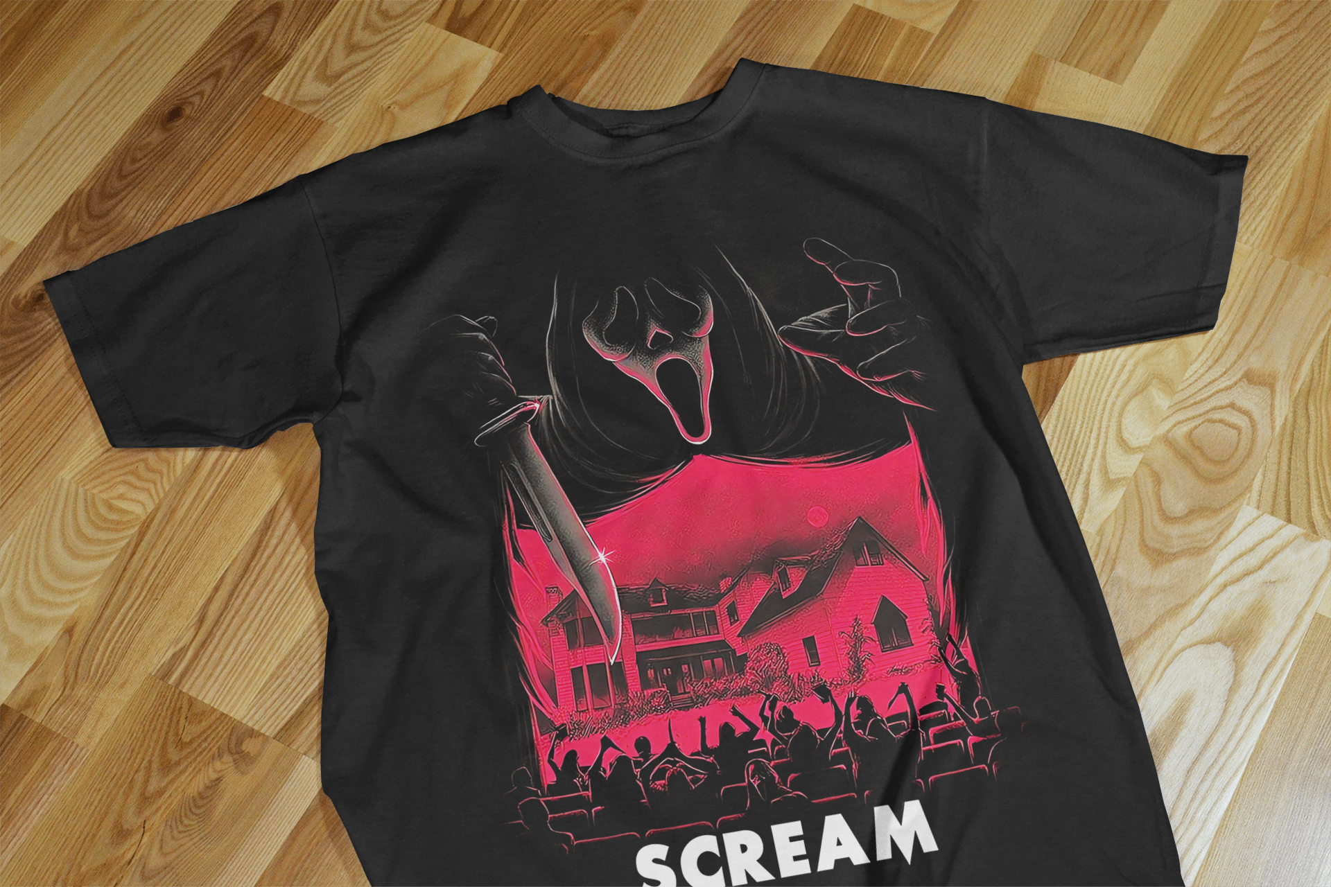 Eres fanático de las películas de terror? ¡Esta playera de Scream es perfecta para ti! Esta prenda te hará destacar en cualquier fiesta de Halloween. ¡No te pierdas la oportunidad de lucir tu amor por el cine de terror! Impresa con tecnología DTF de alta calidad sobre algodón 100%, esta camiseta es suave, duradera y perfecta para los amantes del género. No te pierdas la oportunidad de lucir tu lado más oscuro con esta pieza imprescindible para cualquier fan del terror.