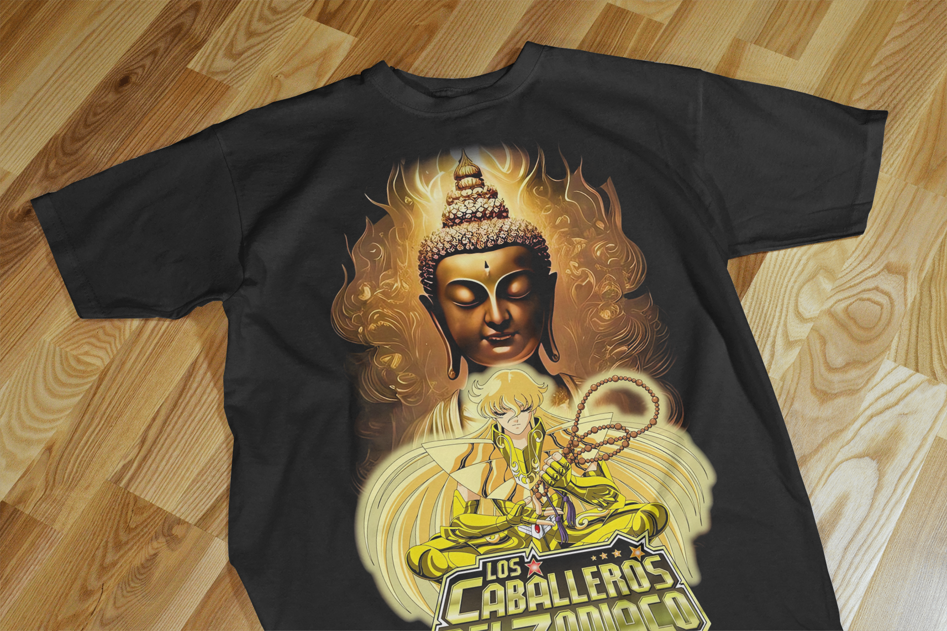¡Desata tu poder interior con Shaka de Virgo! Nuestra playera con el poderoso Santo Dorado de Virgo es perfecta para los fans de Caballeros del Zodiaco que buscan una prenda que represente fuerza y determinación. Algodón 100% y estampado DTF de alta calidad. ¡Siente la energía del cosmos!