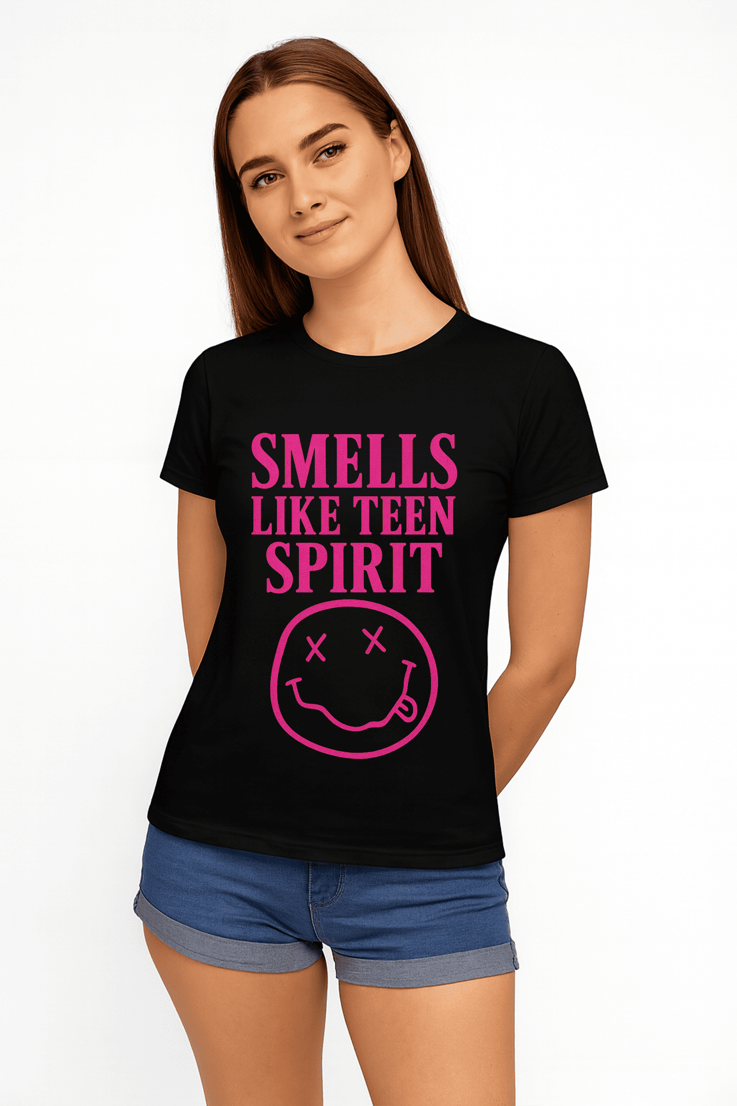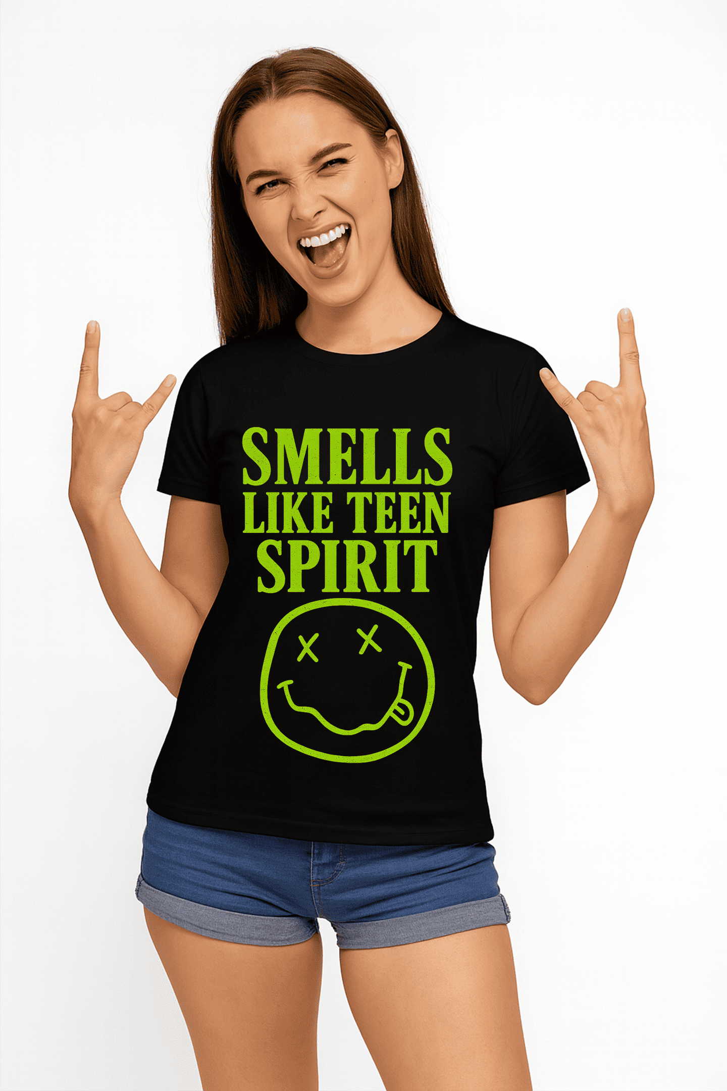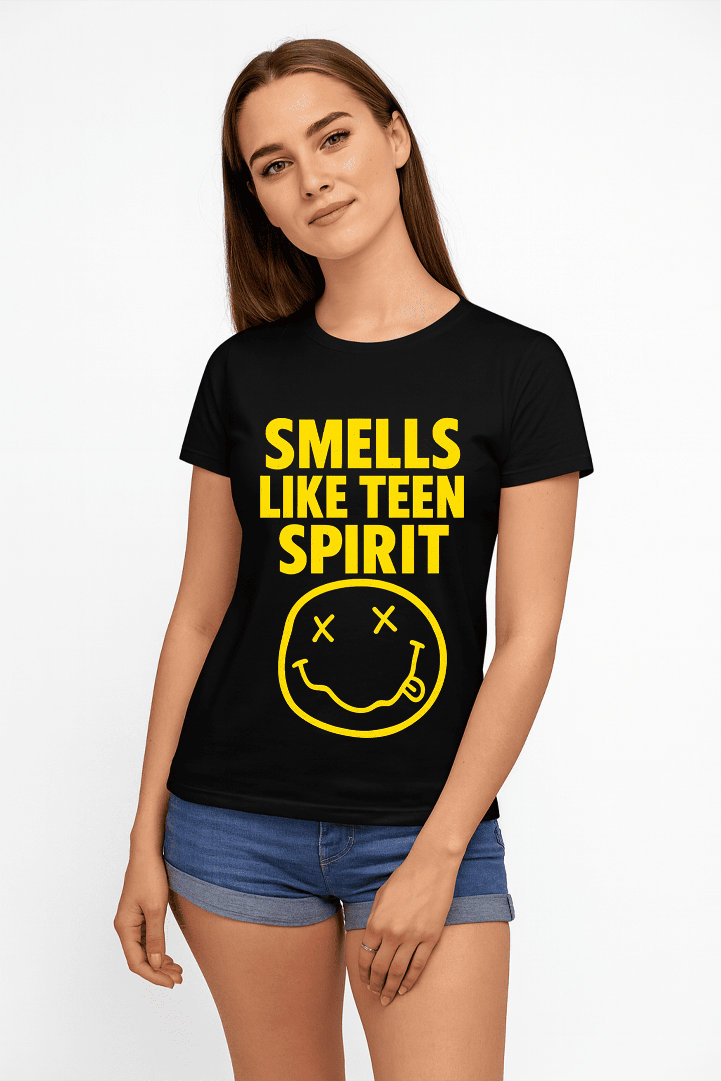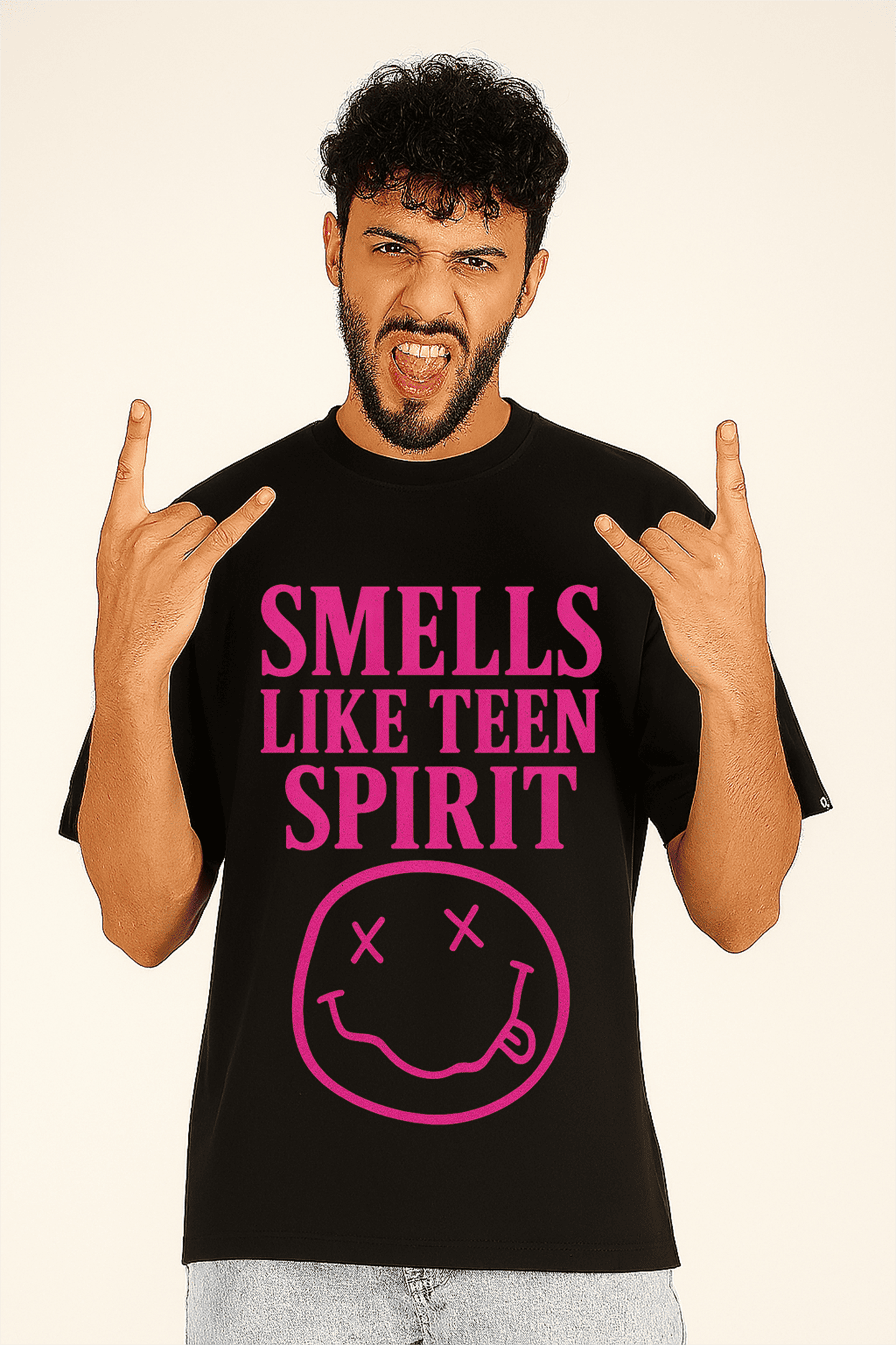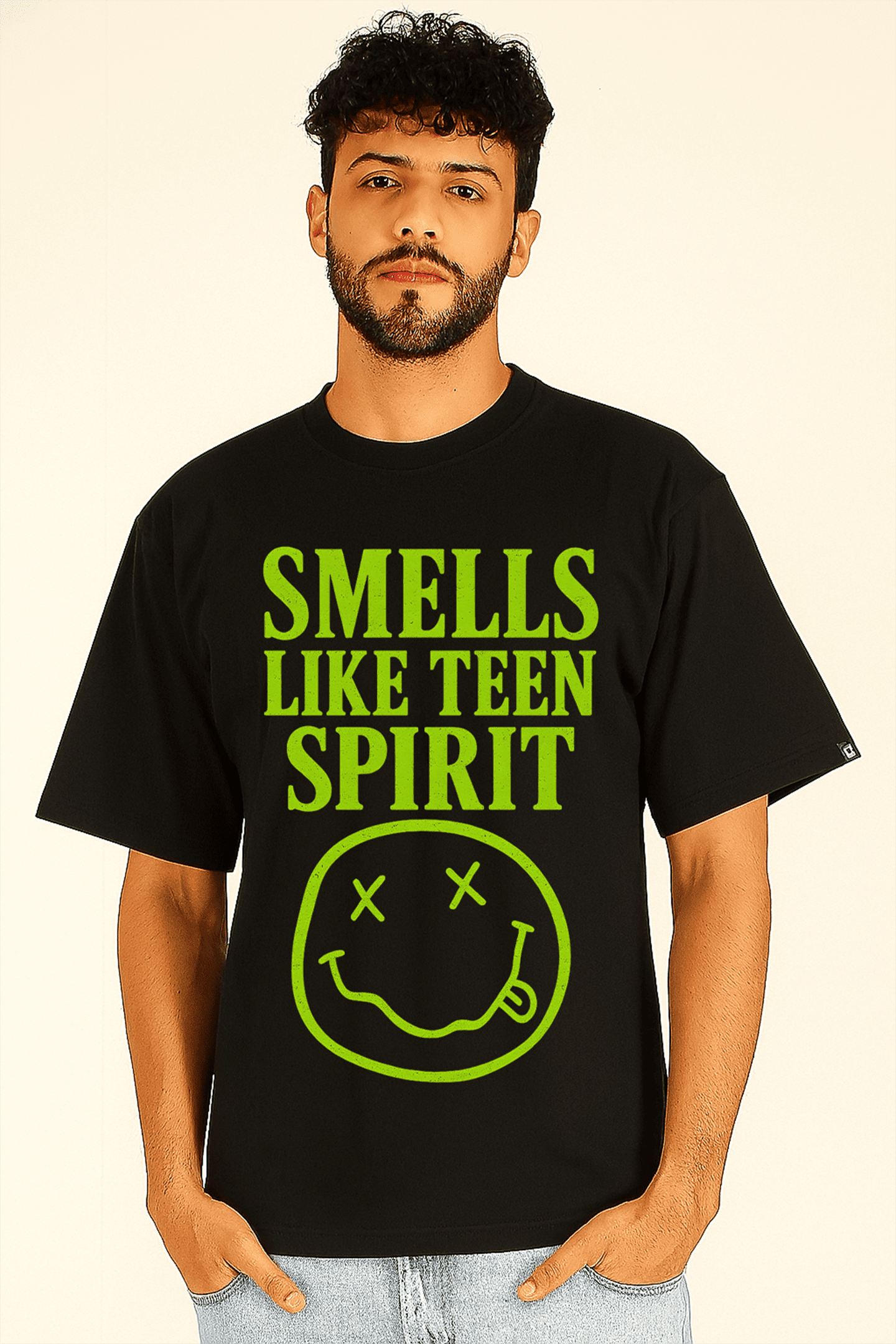 Revive la energía rebelde y el espíritu del grunge con nuestra playera Smells Like Teen Spirit. Un diseño potente y minimalista que rinde homenaje a una de las canciones más icónicas de los 90.