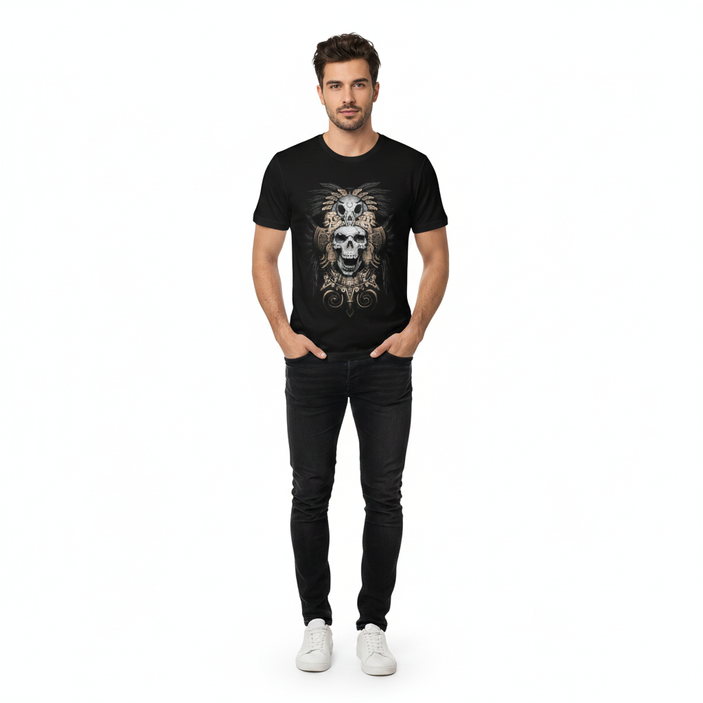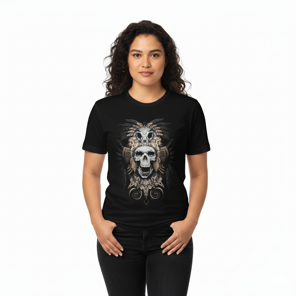La Playera Mexa Doble Calavera – Fuerza Ancestral fusiona símbolos de inspiración prehispánica con el arte del tatuaje contemporáneo, creando un diseño intenso, elegante y rebelde. Ideal para quienes llevan la cultura mexicana no solo en la piel, sino en la actitud.