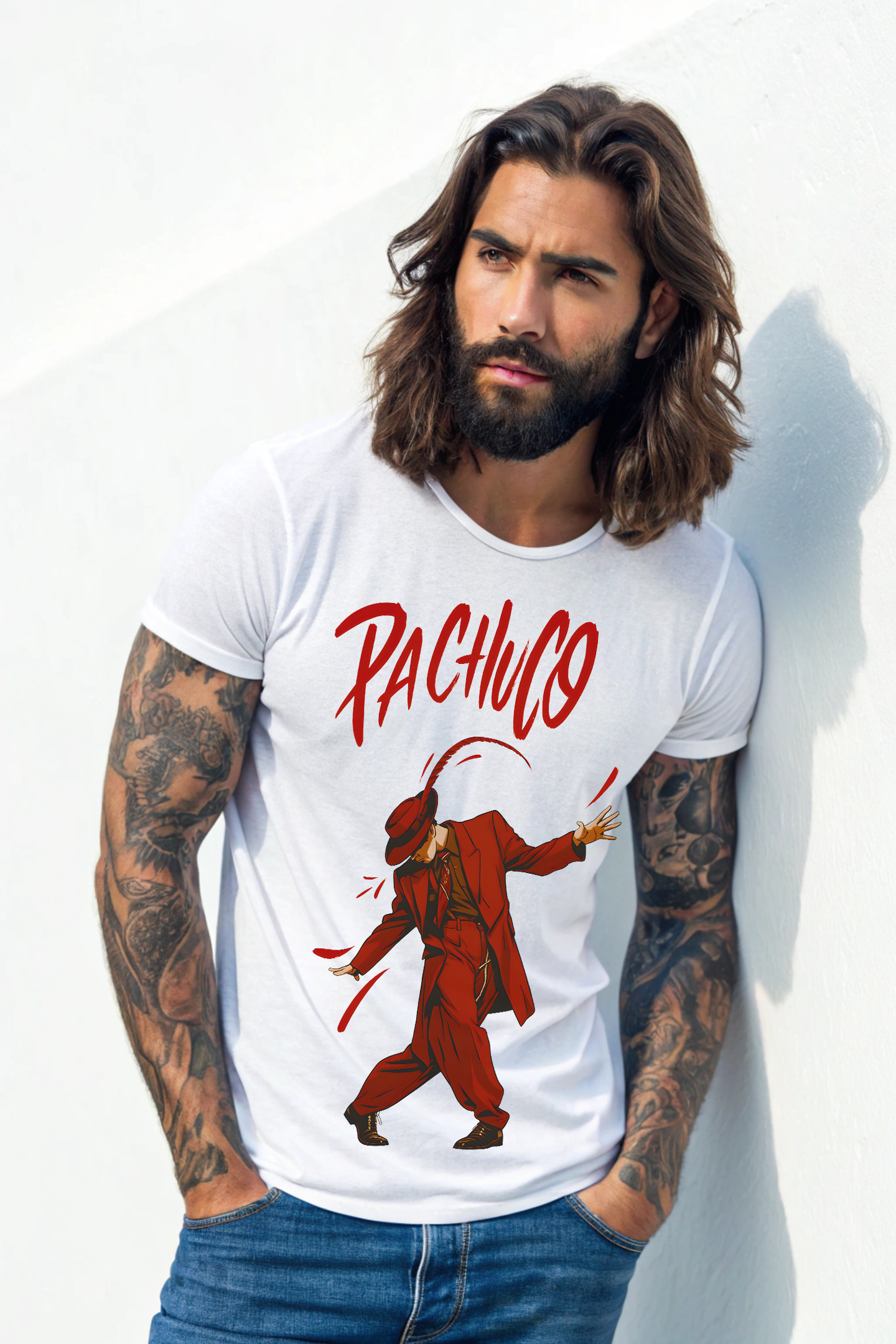 Esta camiseta "Pachuco" es una explosión gráfica de actitud, ritmo y cultura. Inspirada en la icónica canción del rock mexicano, captura la energía del personaje pachuco con un estilo ilustrado lleno de movimiento. Perfecta para quienes vibran con el rock mexa, el orgullo urbano y la estética callejera. Disponible en corte unisex y algodón suave para máximo confort.